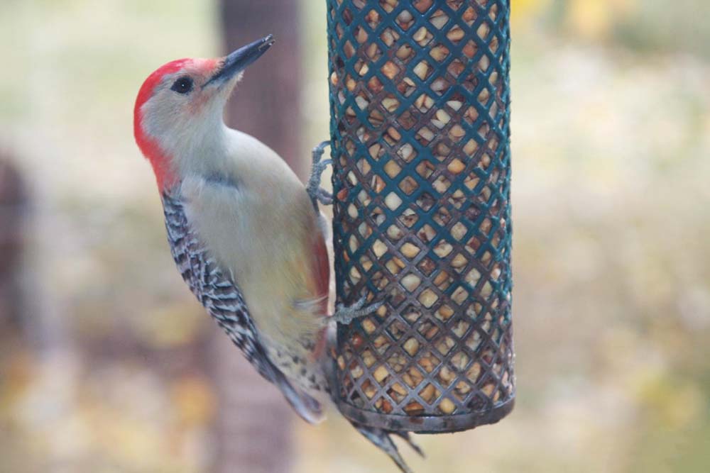 Red-bellied woodpeckers aggressively defend their nesting cavities, but starlings frequently take over their nesting sites.