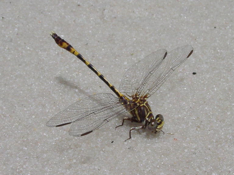 The banner clubtail is found near small, shaded streams with loose flowing sand.