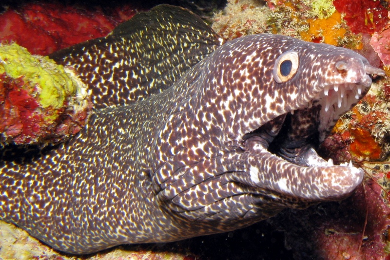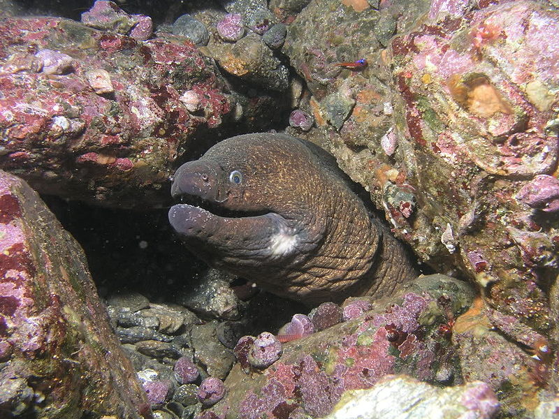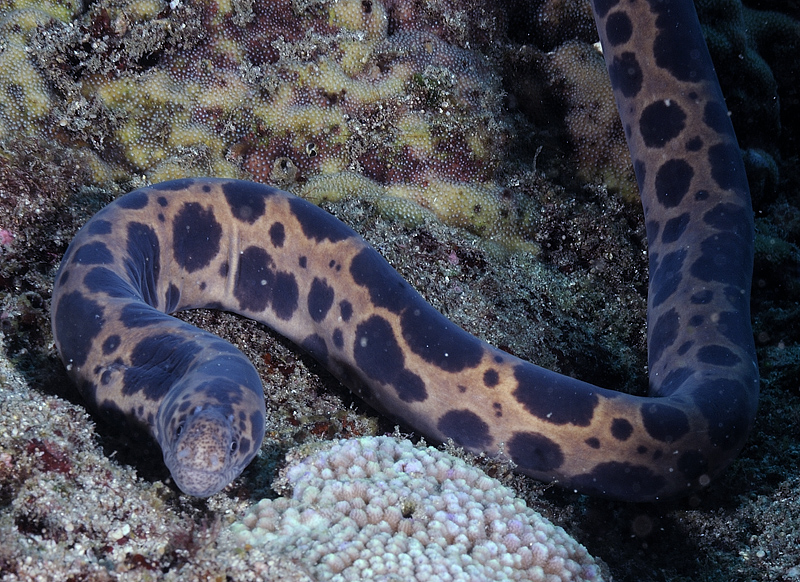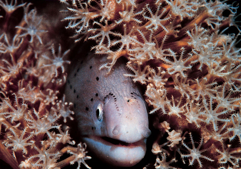 There are close to 200 species in this family of eels. Most species are found in shallow water among rocks and coral. and many species are active at night and spend the day hidden in the rock or coral crevices. Most species are found in tropical and sub-tropical marine environments, a few species can be found in brackish water, and a a handful of species are found in fresh water.