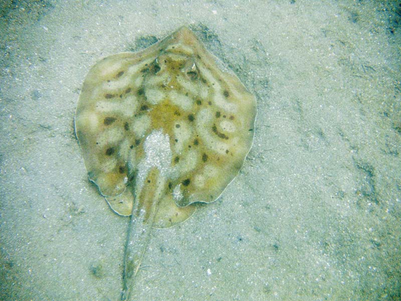 The round stingray feeds on bottom dwelling invertebrates and small fish.