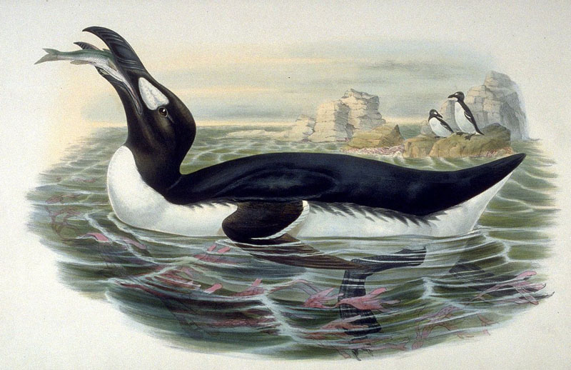 The last great auk was seen in 1852 off the Newfoundland Banks.