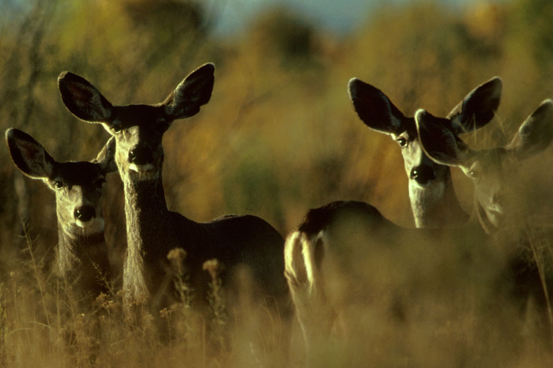 Carnivores, like the wolf, have large, powerful jaws that help bring down large animals like white-tailed deer. The bobcat and mountain lion have powerful paws with sharp claws that help them catch prey.