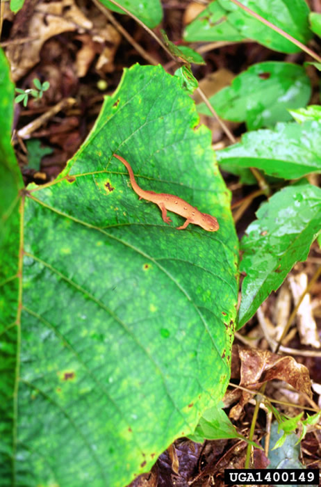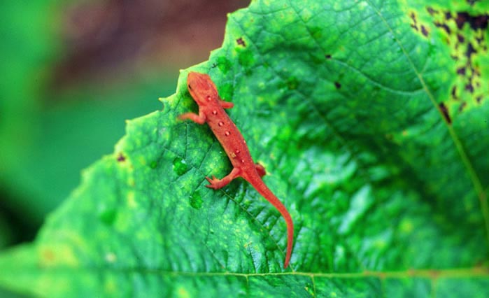 The red-spotted newt is the subspecies of the eastern newt found throughout New Hampshire.