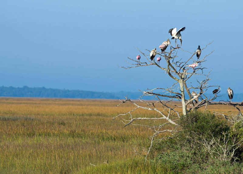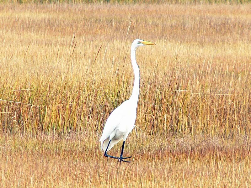Birds are also abundant in estuaries. Between the plants and the fish and other animal life, there's lots for them to eat. Many migratory birds like the Canada Goose use estuaries as resting and feeding places when they migrate. Long-legged birds like sandpipers, great blue herons, great egrets, and green herons are common in estuaries. Their long legs are perfect for wading in the water and their long toes make walking in the mud easy! Their bills are adapted for catching and eating fish, worms, crabs, and other invertebrates that live in the estuary. |