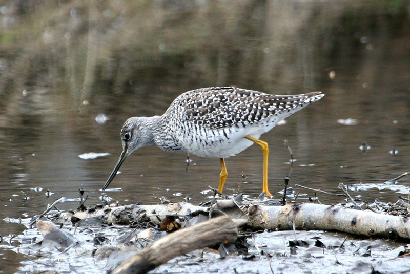 The greater yellowlegs breeds on the tundra and marshy areas. During migration and in the winter, it is found on lakeshores and tidal mudflats.