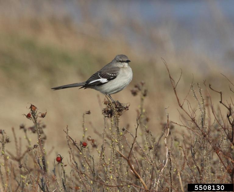 The northern mockingbird lives in open country with thickets, farmland, and desert brush.