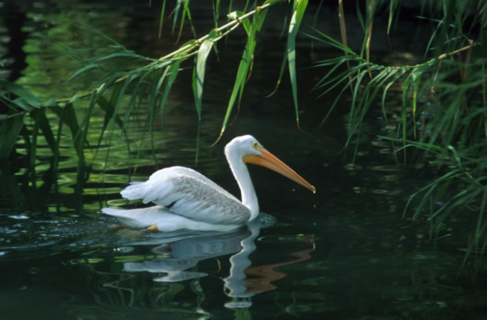 The great white pelican is found in freshwater lakes, deltas, marshes, and swamps.