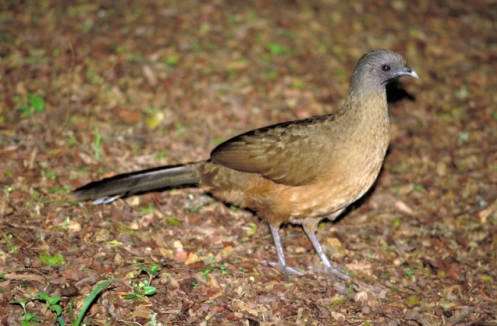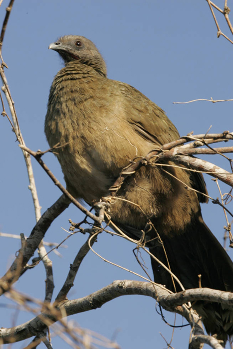 The plain chachalaca is a very noisy bird. At dawn and sunset, groups of them call loudly from the treetops.