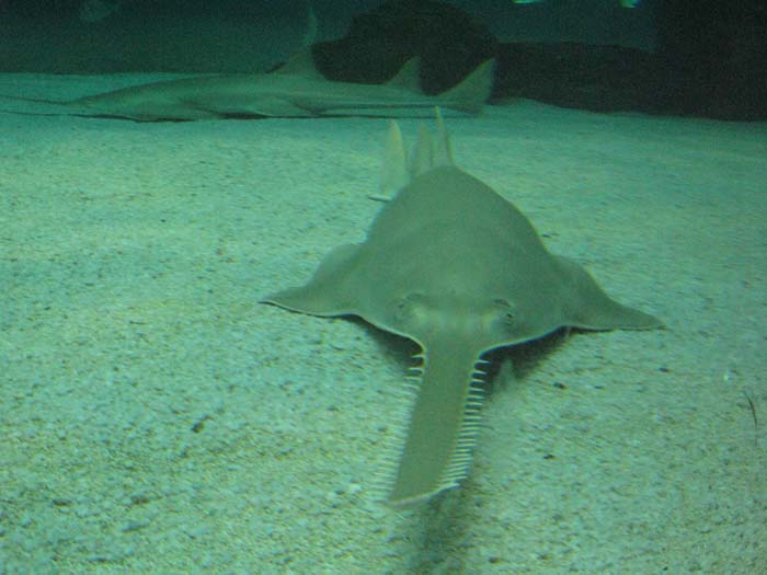 The knifetooth sawfish is found in inshore coastal waters.