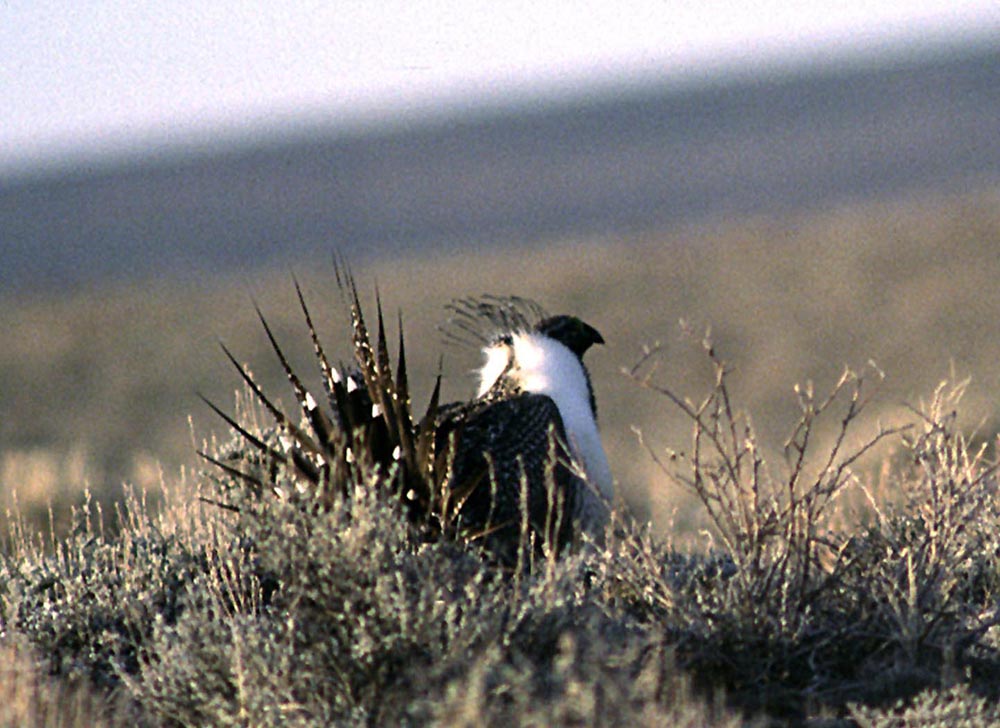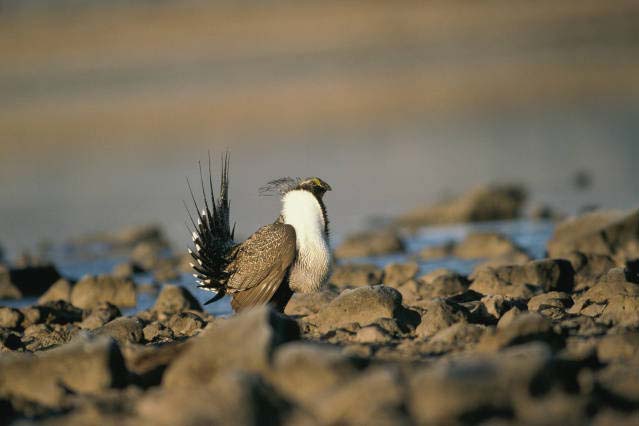 The greater sage grouse makes its home on open plains and sagebrush plains. |