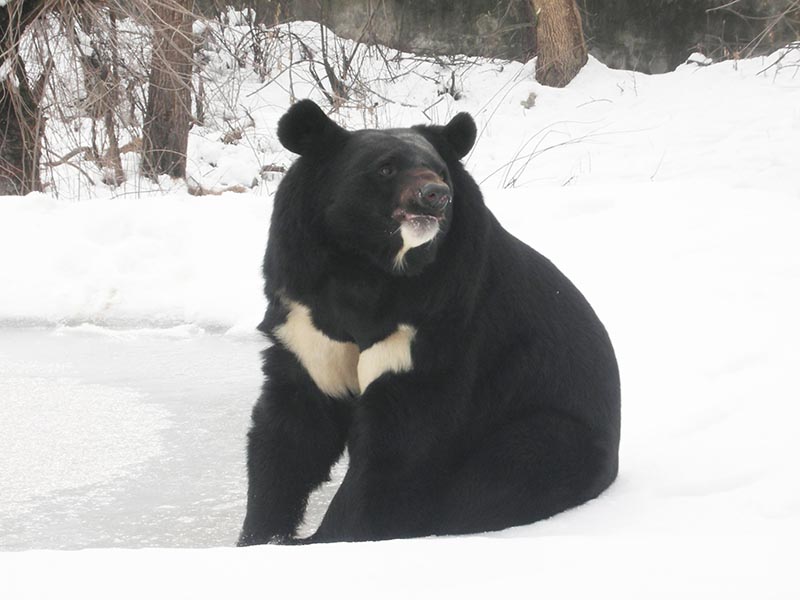 The Asiatic black bear is also know as the moon bear because of the crescent-shaped ruff of cream colored fur on its chest.