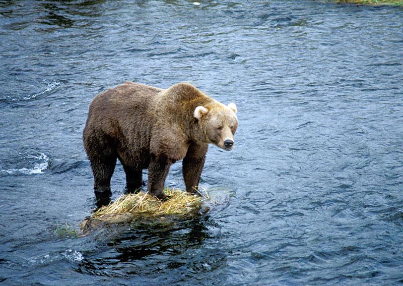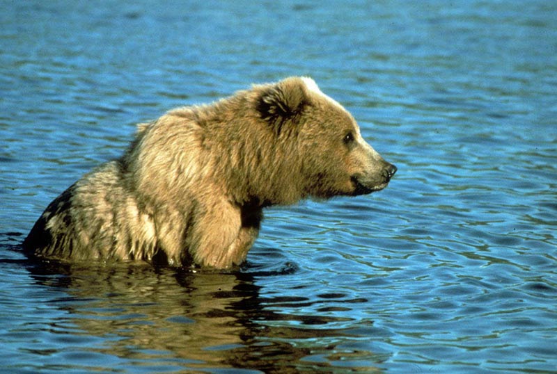 The brown bear is also known as the grizzly bear. Some brown bears have fur that is tipped in a lighter color than the rest of its fur. This gives the fur a grizzled look and is how the bear got the name grizzly bear.